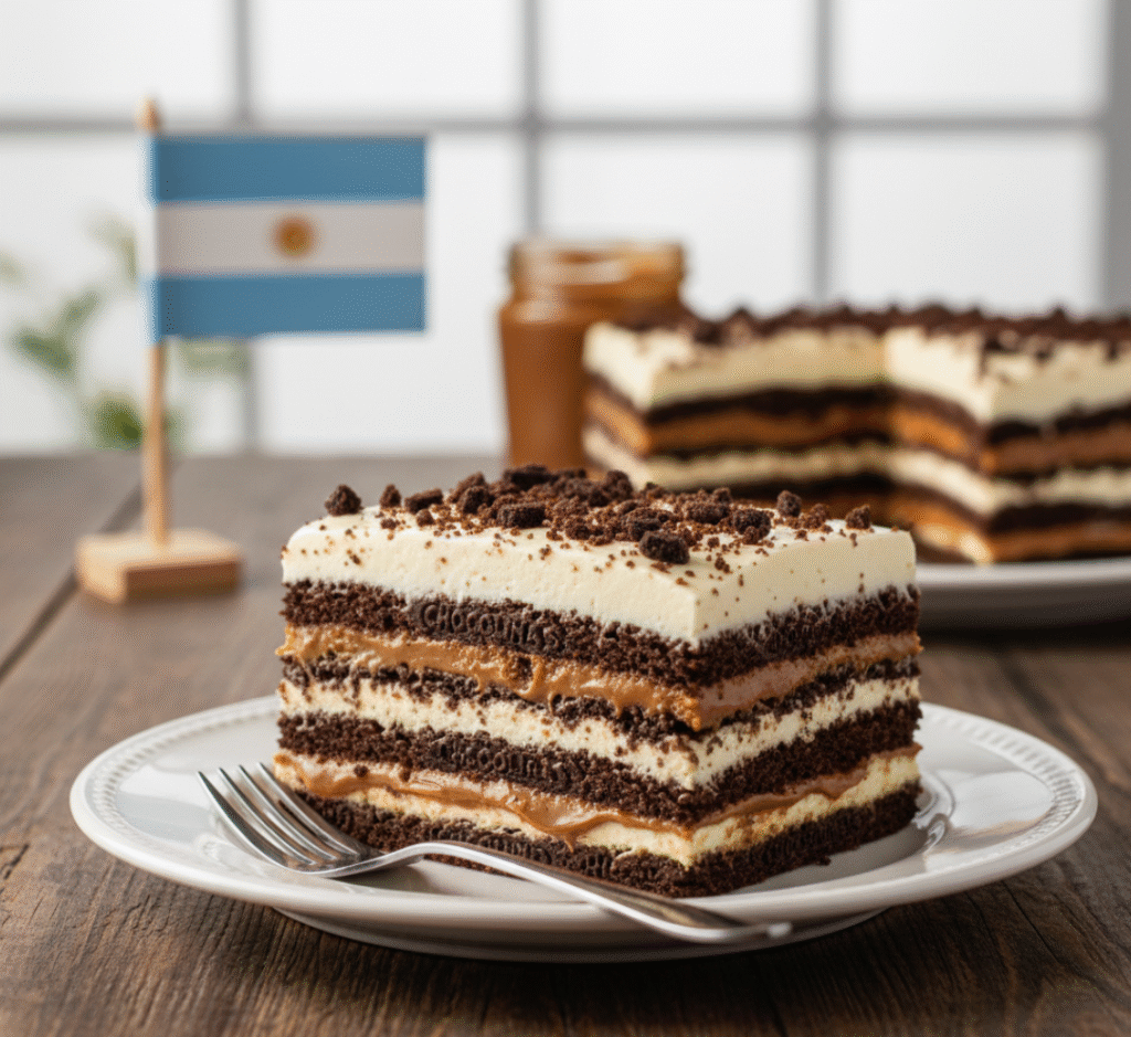 La chocotorta es probablemente el postre frío más famoso de Argentina: galletitas de chocolate, dulce de leche y queso crema. No lleva horno, se arma rápido y siempre gusta.