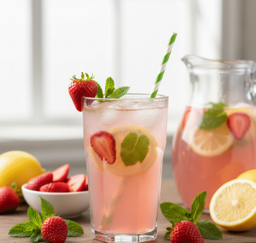 La limonada de frutilla combina acidez y dulzor en una bebida súper refrescante, perfecta para el verano.